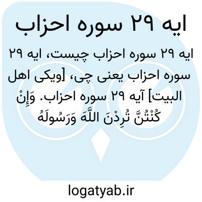 [ویکی اهل البیت] آیه 29 سوره احزاب. وَإِنْ کُنْتُنَّ تُرِدْنَ اللَّهَ وَرَسُولَهُ وَالدَّارَ الْآخِرَةَ فَإِنَّ اللَّهَ أَعَدَّ لِلْمُحْسِنَاتِ مِنْکُنَّ أَجْرًا عَظِیمًا