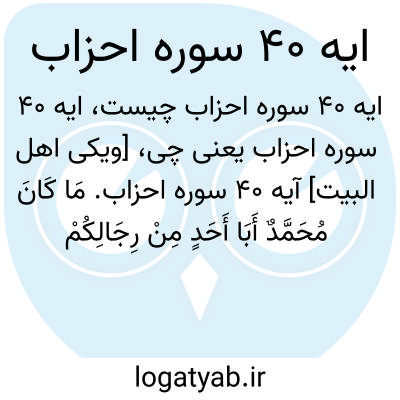 محمّد (ص) پدر هیچ یک از مردان شما نبوده و نیست؛ ولی رسول خدا و ختم کننده و آخرین پیامبران است؛ و خداوند به همه چیز آگاه است!