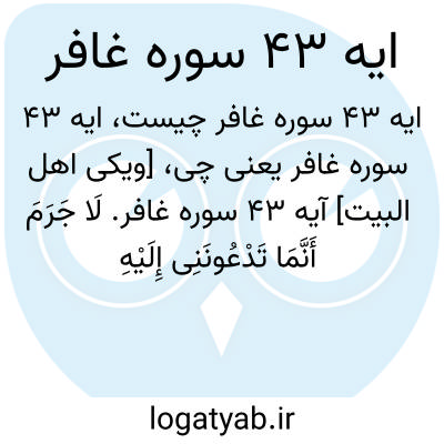[ویکی اهل البیت] آیه 43 سوره غافر. لَا جَرَمَ أَنَّمَا تَدْعُونَنِی إِلَیْهِ لَیْسَ لَهُ دَعْوَةٌ فِی الدُّنْیَا وَلَا فِی الْآخِرَةِ وَأَنَّ مَرَدَّنَا إِلَی اللَّهِ وَأَنَّ الْمُسْرِفِینَ هُمْ أَصْحَابُ النَّارِ