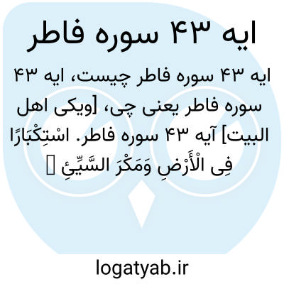 [ویکی اهل البیت] آیه 43 سوره فاطر. اسْتِکْبَارًا فِی الْأَرْضِ وَمَکْرَ السَّیِّئِ ۚ وَلَا یَحِیقُ الْمَکْرُ السَّیِّئُ إِلَّا بِأَهْلِهِ ۚ فَهَلْ یَنْظُرُونَ إِلَّا سُنَّتَ الْأَوَّلِینَ ۚ فَلَنْ تَجِدَ لِسُنَّتِ اللَّهِ تَبْدِیلًا ۖ وَلَنْ تَجِدَ لِسُنَّتِ اللَّهِ تَحْوِیلًا