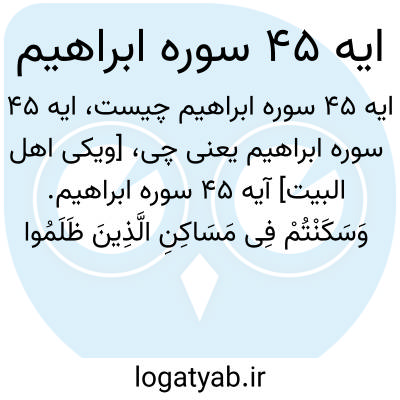 [ویکی اهل البیت] آیه 45 سوره ابراهیم. وَسَکَنْتُمْ فِی مَسَاکِنِ الَّذِینَ ظَلَمُوا أَنْفُسَهُمْ وَتَبَیَّنَ لَکُمْ کَیْفَ فَعَلْنَا بِهِمْ وَضَرَبْنَا لَکُمُ الْأَمْثَالَ