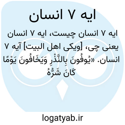 [ویکی اهل البیت] آیه 7 انسان. «یُوفُونَ بِالنَّذْرِ وَیَخَافُونَ یَوْمًا کَانَ شَرُّهُ مُسْتَطِیرًا».