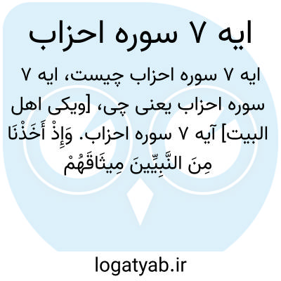 [ویکی اهل البیت] آیه 7 سوره احزاب. وَإِذْ أَخَذْنَا مِنَ النَّبِیِّینَ مِیثَاقَهُمْ وَمِنْکَ وَمِنْ نُوحٍ وَإِبْرَاهِیمَ وَمُوسَیٰ وَعِیسَی ابْنِ مَرْیَمَ ۖ وَأَخَذْنَا مِنْهُمْ مِیثَاقًا غَلِیظًا