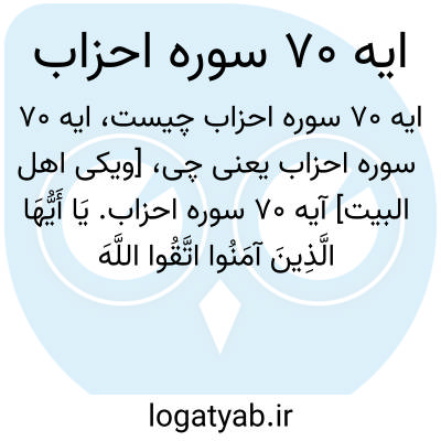 [ویکی اهل البیت] آیه 70 سوره احزاب. یَا أَیُّهَا الَّذِینَ آمَنُوا اتَّقُوا اللَّهَ وَقُولُوا قَوْلًا سَدِیدًا