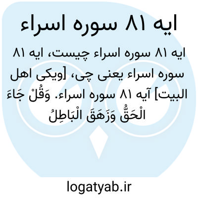 [ویکی اهل البیت] آیه 81 سوره اسراء. وَقُلْ جَاءَ الْحَقُّ وَزَهَقَ الْبَاطِلُ ۚ إِنَّ الْبَاطِلَ کَانَ زَهُوقًا