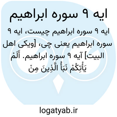 [ویکی اهل البیت] آیه 9 سوره ابراهیم. أَلَمْ یَأْتِکُمْ نَبَأُ الَّذِینَ مِنْ قَبْلِکُمْ قَوْمِ نُوحٍ وَعَادٍ وَثَمُودَ ۛ وَالَّذِینَ مِنْ بَعْدِهِمْ ۛ لَا یَعْلَمُهُمْ إِلَّا اللَّهُ ۚ جَاءَتْهُمْ رُسُلُهُمْ بِالْبَیِّنَاتِ فَرَدُّوا أَیْدِیَهُمْ فِی أَفْوَاهِهِمْ وَقَالُوا إِنَّا کَفَرْنَا بِمَا أُرْسِلْتُمْ بِهِ وَإِنَّا لَفِی شَکٍّ مِمَّا تَدْعُونَنَا إِلَیْهِ مُرِیبٍ