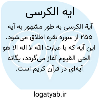 [ویکی شیعه] آیه الکرسی. آیَةُ الْکُرْسی، آیه ۲۵۵ سوره بقره که برخی از مفسران، آیات ۲۵۶ و ۲۵۷ از همین سوره را نیز به سبب ارتباط مفاهیم آنها با مفاهیم آیه ۲۵۵، جزء آیة الکرسی دانسته اند. در قرآن مجید تنها در این آیه، از «کرسی خداوند» سخن به میان آمده است: «وَسِعَ کُرسِیُّهُ السَّمواتِ و الارضَ: کرسی او به پهنای آسمان ها و زمین است ». اشتهار این آیه به «آیةالکرسی » به همین سبب است و در زمان پیامبر اکرم (ص ) نیز به آیةالکرسی معروف بوده است.