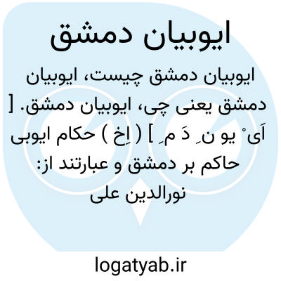 ایوبیان دمشق. [ اَی ْ یو ن ِ دَ م ِ ] ( اِخ ) حکام ایوبی حاکم بر دمشق و عبارتند از: نورالدین علی افضل تا سال 582 هَ. ق. و یوسف الدین ابوبکر عادل تا سال 592 هَ. ق. و شرف الدین عیسی، معظم تا سال 615 هَ. ق. و معظم ( سلطان مصر ) تا سال 647 هَ. ق. و صلاح الدین داود ناصر تا سال 624 هَ. ق. و موسی اشرف ( سلطان الجزیره ) تا سال 626 هَ. ق. و اسماعیل صالح تا سال 635 هَ. ق. و کامل ( سلطان ) تا سال 635 هَ. ق. و عادل ( سلطان مصر ) تا سال 637 هَ. ق. و اسماعیل صالح ( مجدداً ) تا سال 637 هَ. ق. و صالح ( سلطان مصر ) تاسال 643 هَ. ق. و صلاح الدین یوسف ( سلطان حلب ) از سال 648 تا سال 658 هَ. ق. حکومت اینان بدست سلسله مغول منقرض گردید. ( طبقات سلاطین لین پول ص 67 - 68 ).