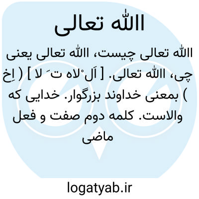 اﷲ تعالی. [ اَل ْلاه ت َ لا ] ( اِخ ) بمعنی خداوند بزرگوار. خدایی که والاست. کلمه دوم صفت و فعل ماضی است از مصدر تعالی ( بکسر لام ) بمعنی بلند و بزرگ شدن. و رجوع به اﷲ شود.