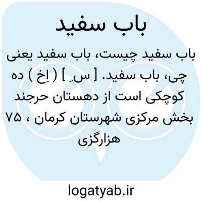 باب سفید. [ س ِ ] ( اِخ ) ده کوچکی است از دهستان حرجند بخش مرکزی شهرستان کرمان، 75 هزارگزی شمال باختری کرمان و 3 هزارگزی باختر راه مالرو کرمان به شاهزاده محمد. سکنه آن 10تن. ( فرهنگ جغرافیائی ایران ج 8 ).