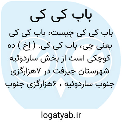 باب کی کی. ( اِخ ) ده کوچکی است از بخش ساردوئیه شهرستان جیرفت در 7هزارگزی جنوب ساردوئیه، 6هزارگزی جنوب راه مالرو جیرفت - ساردوئیه. دارای 3 تن سکنه است. ( فرهنگ جغرافیائی ایران ج 8 ).