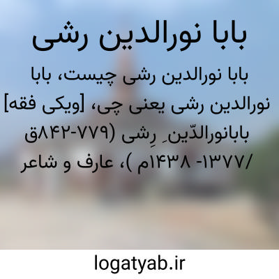 [ویکی فقه] بابانورالدّین ِ رِشی (۷۷۹-۸۴۲ق /۱۳۷۷- ۱۴۳۸م )، عارف و شاعر کشمیری که به «شیخ نورالدین ولی » نیز مشهور است.