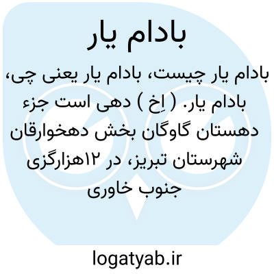 بادام یار. ( اِخ ) دهی است جزء دهستان گاوگان بخش دهخوارقان شهرستان تبریز، در 12هزارگزی جنوب خاوری دهخوارقان و 12هزارگزی شوسه ٔتبریز - دهخوارقان قرار دارد. منطقه ای است جلگه ای ومعتدل با 252 تن سکنه. آبش از چشمه و محصولش غلات، توتون، بادام، کنجد و شغل مردمش زراعت و گله داری و راهش مالرو میباشد. ( از فرهنگ جغرافیائی ایران ج 4 ).