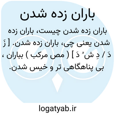 باران زده شدن. [ زَ دَ / دِ ش ُ دَ ] ( مص مرکب ) بباران، بی پناهگاهی تر و خیس شدن.