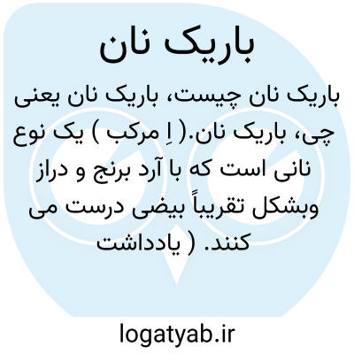 باریک نان.( اِ مرکب ) یک نوع نانی است که با آرد برنج و دراز وبشکل تقریباً بیضی درست می کنند. ( یادداشت مؤلف ).