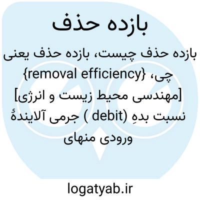 {removal efficiency} [مهندسی محیط زیست و انرژی] نسبت بدهِ (debit ) جرمی آلایندۀ ورودی منهای بدهِ جِرمی آن در خروجی به بدهِ آلایندۀ ورودی