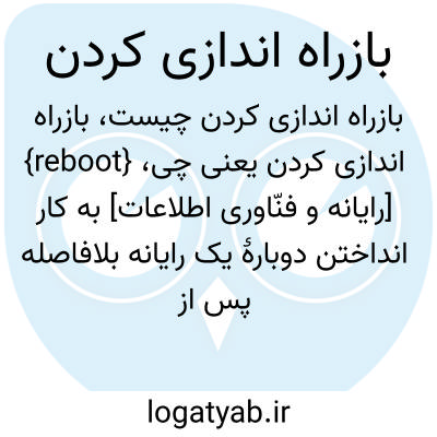 {reboot} [رایانه و فنّاوری اطلاعات] به کار انداختن دوبارۀ یک رایانه بلافاصله پس از خاموش کردن آن