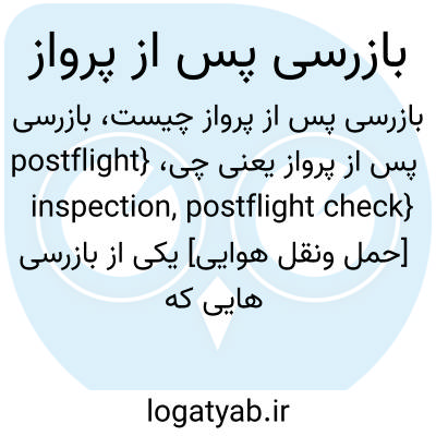 {postflight inspection, postflight check} [حمل ونقل هوایی] یکی از بازرسی هایی که خدمۀ پرواز یا خدمۀ زمینی پس از خاتمه پرواز انجام می دهند تا از سلامت هواگَرد اطمینان حاصل کنند