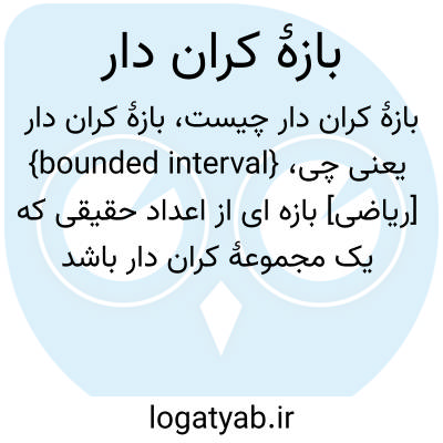 {bounded interval} [ریاضی] بازه ای از اعداد حقیقی که یک مجموعۀ کران دار باشد