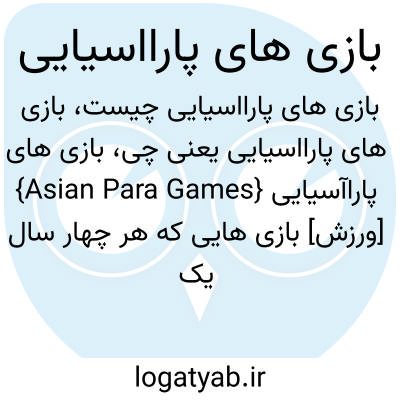 {Asian Para Games} [ورزش] بازی هایی که هر چهار سال یک بار و بعد از بازی های آسیایی برای ورزشکاران دارای معلولیت جسمی برگزار می شود متـ. بازی های آسیایی معلولان