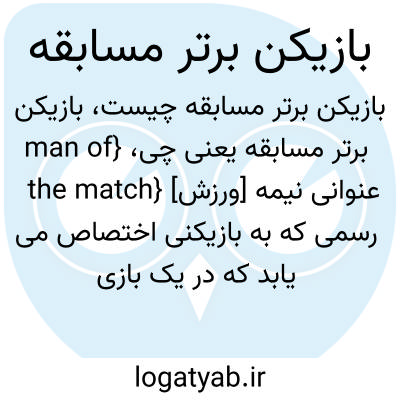 {man of the match} [ورزش] عنوانی نیمه رسمی که به بازیکنی اختصاص می یابد که در یک بازی مشخص بهترین عملکرد را داشته است متـ. بازیکن برتر، ستارۀ میدان، ستارۀ مسابقه