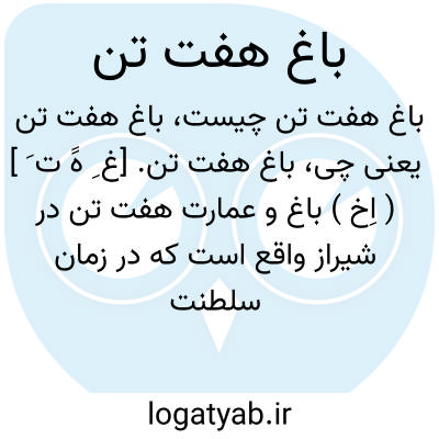 باغ هفت تن. [غ ِ هََ ت َ ] ( اِخ ) باغ و عمارت هفت تن در شیراز واقع است که در زمان سلطنت کریم خان ساخته شده و از ابنیه تاریخی ایران بشمار میرود. رجوع به هفت تن شود.