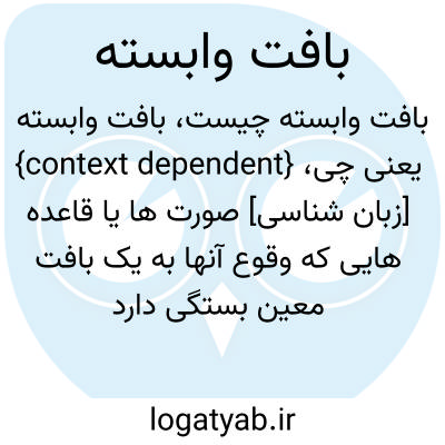 {context dependent} [زبان شناسی] صورت ها یا قاعده هایی که وقوع آنها به یک بافت معین بستگی دارد