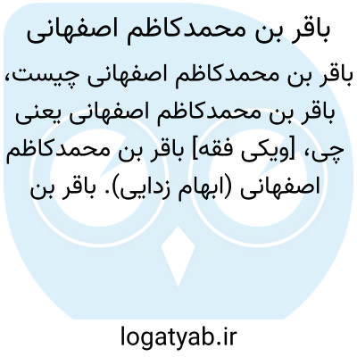[ویکی فقه] باقر بن محمدکاظم اصفهانی (خطاط). باقر بن محمّدکاظم اصفهانی، از خطاطان و نویسندگان کتب در اصفهان می باشد.