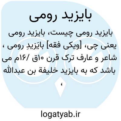 [ویکی فقه] بایَزیدِ رومی، شاعر و عارف ترک قرن ۱۰ق /۱۶م می باشد که به بایزید خلیفة بن عبدالله، بایزید درویش و بایزید ثانی نیز شهرت دارد.