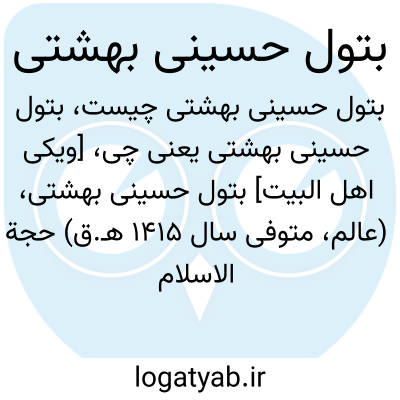 [ویکی اهل البیت] بتول حسینی بهشتی، (عالم، متوفی سال 1415 هـ.ق) حجة الاسلام محمدصادق مدرس خاتون آبادی (م 1348 هـ.ق) و برادرش شهید مظلوم آیت الله دکتر سید محمد بهشتی بود. این بانو بدون تردید در بین زنان نمونه زمان فعلی و اقران و هم ردیفان خود از نظر خصوصیات ایمانی و سلوک اخلاقی و پای بندی به اصول و ارزش های اسلامی و از نظر قدرت تأثیرگذاری تربیتی و خدمتگزاری به جامعه، بسیار موفق و الگو و کم نظیر بود. وی در سال 1342 هـ.ق در یک خانواده ای روحانی و اصیل در محله لنبان اصفهان متولد شد و در سال 1415 هـ.ق جهان را بدرود گفت. معاونت پژوهش مرکز حوزه های علمیه خواهران, بانوان عالمه و آثار آن ها