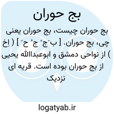 بج حوران. [ ب َج ْ ج ُ ح َ ] ( اِخ ) از نواحی دمشق و ابوعبداﷲ یحیی از بج حوران بوده است. قریه ای نزدیک باب دمشق و از توابع بانیاس. ( از معجم البلدان ).