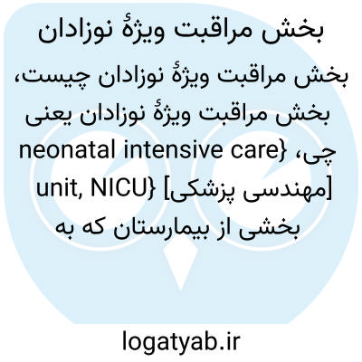 {neonatal intensive care unit, NICU} [مهندسی پزشکی] بخشی از بیمارستان که به مراقبت از نوزادان مبتلا به بیماری های حاد می پردازد
