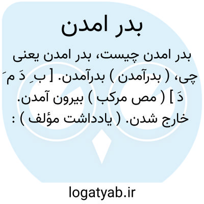 ( بدرآمدن ) بدرآمدن. [ ب ِ دَ م َ دَ ] ( مص مرکب ) بیرون آمدن. خارج شدن. ( یادداشت مؤلف ):
