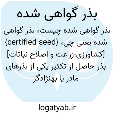 {certified seed} [کشاورزی-زراعت و اصلاح نباتات] بذر حاصل از تکثیر یکی از بذرهای مادر یا بهنژادگر یا گزیده یا ثبت شده