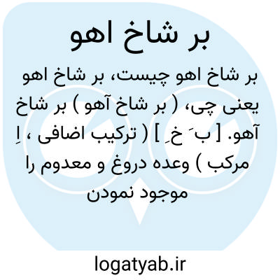( بر شاخ آهو ) بر شاخ آهو. [ ب َ خ ِ ] ( ترکیب اضافی، اِ مرکب ) وعده دروغ و معدوم را موجود نمودن بدروغ و خبرهای بی بنیاد. ( آنندراج ) ( مجموعه مترادفات ). این مثل در جایی بکار رود که حصول مقصد ممکن نیست و وصول بمراد متعذر است زیرا که شاخ آهو خالی از برگ و بار است و حاصل از آن خارخار است. ( آنندراج ).