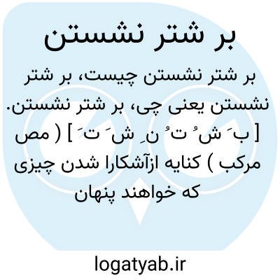 بر شتر نشستن. [ ب َ ش ُ ت ُ ن ِ ش َ ت َ ] ( مص مرکب ) کنایه ازآشکارا شدن چیزی که خواهند پنهان ماند:
