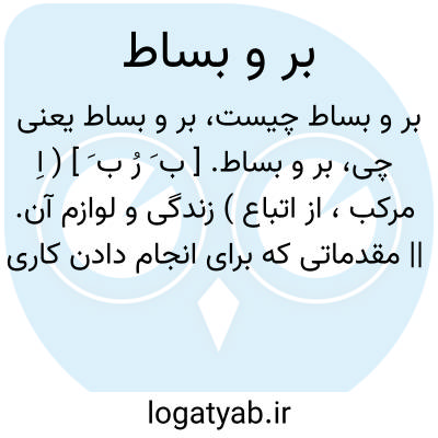 بر و بساط. [ ب َ رُ ب َ ] ( اِ مرکب، از اتباع ) زندگی و لوازم آن. || مقدماتی که برای انجام دادن کاری فراهم شده است. ( فرهنگ لغات عامیانه ).