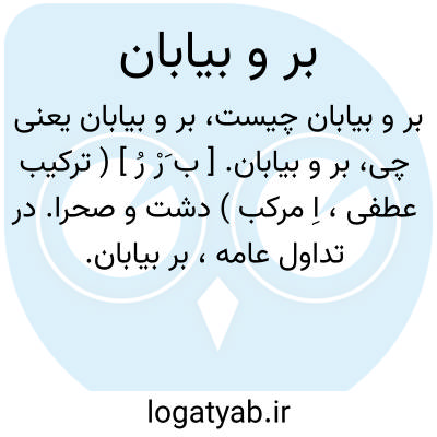 بر و بیابان. [ ب َرْ رُ ] ( ترکیب عطفی، اِ مرکب ) دشت و صحرا. در تداول عامه، بر بیابان.