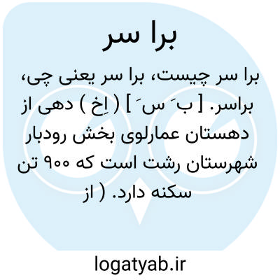 براسر. [ ب َ س َ ] ( اِخ ) دهی از دهستان عمارلوی بخش رودبار شهرستان رشت است که 900 تن سکنه دارد. ( از فرهنگجغرافیایی ایران ج 2 ).