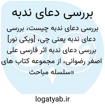 [ویکی فقه] بررسی دعای ندبه (کتاب). «بررسی دعای ندبه» اثر فارسی علی اصغر رضوانی، از مجموعه کتاب های «سلسله مباحث مهدویت» بوده که به بررسی سندی دعای ندبه و نظر بزرگان پیرامون آن پرداخته است.