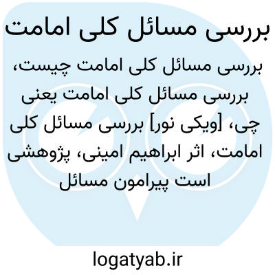 [ویکی نور] بررسی مسائل کلی امامت، اثر ابراهیم امینی، پژوهشی است پیرامون مسائل کلی مربوط به امامت، از جمله عصمت و علم امام که به زبان فارسی و در دوران معاصر نوشته شده است.
