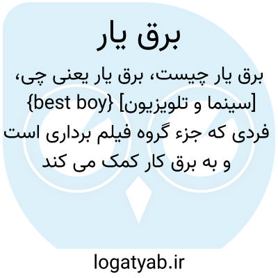 {best boy} [سینما و تلویزیون] فردی که جزء گروه فیلم برداری است و به برق کار کمک می کند