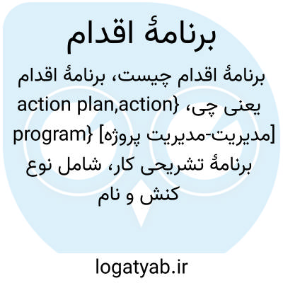 {action plan,action program} [مدیریت-مدیریت پروژه] برنامۀ تشریحی کار، شامل نوع کنش و نام کنشگر و زمان بندی