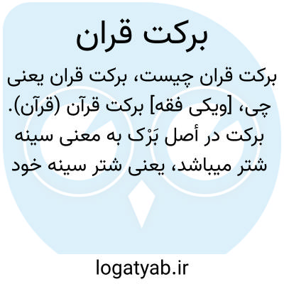 [ویکی فقه] برکت قرآن (قرآن). برکت در أصل بَرْک به معنی سینه شتر میباشد، یعنی شتر سینه خود را به زمین زد، سپس این کلمه به معنی دوام و رشد آمده و برکت در اصطلاح یعنی استقرار خیر از سوی خداوند، در یک چیز. قرآن کتابی پرخیر و برکت می باشد؛ به این مهم در آیات متعددی از قرآن اشاره شده است.