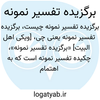 [ویکی نور] برگزیده تفسیر نمونه، چکیده تفسیر نمونه است که به اهتمام آقای احمد علی بابایی، در پنج جلد و در حدود سه هزار صفحه و طی سه سال کار فراهم آمده است...