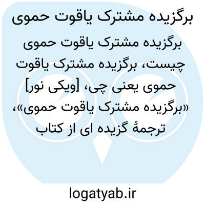 [ویکی نور] «برگزیده مشترک یاقوت حموی»، ترجمۀ گزیده ای از کتاب «المشترک وضعا و المفترق صقعا» یاقوت حموی است. این کتاب فرهنگ جاهایی است که نام آن مشترک است. از عبارت خود یاقوت در مقدمه کتاب معلوم می شود که آن را از فرهنگ بزرگ(معجم البلدان) استخراج کرده تا مراجعه بدان آسان باشد.