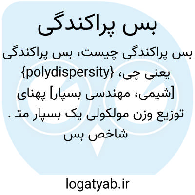 {polydispersity} [شیمی، مهندسی بسپار] پهنای توزیع وزن مولکولی یک بسپار متـ. شاخص بس پراکندگی polydispersity index, polymolecularity index