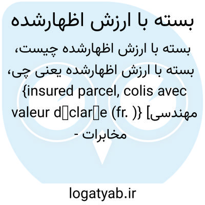 {insured parcel, colis avec valeur déclarée (fr. )} [مهندسی مخابرات - پست] بسته ای پُستی که معادل ارزش اظهارشدۀ آن به وسیلۀ فرستنده بیمه می شود