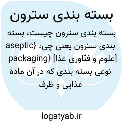 {aseptic packaging} [علوم و فنّاوری غذا] نوعی بسته بندی که در آن مادۀ غذایی و ظرف جداگانه ضدعفونی می شوند و بسته بندی در شرایط و محیطی سترون انجام می شود