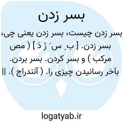 ( مصدر ) ۱- با دست روی سر زدن در موقع پریشانی و بدبختی. ۲- باخر رسانیدن چیزی را. ۳- موافقت کردن با چیزی. ۴- ( مصدر ) فکری و خیالی غفله در سر کسی آمدن:( فلانی بسرش زد که آن کار را بکند. ) ۵- دیوانه شدن: بسرش زده.
